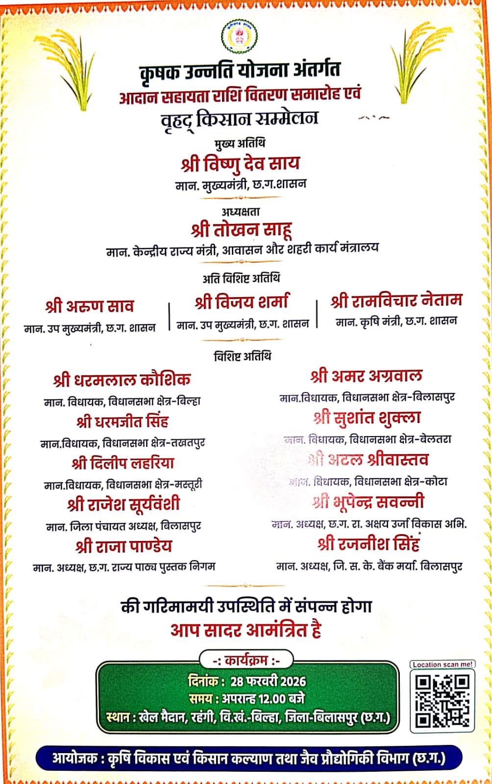 बिलासपुर :— मुख्यमंत्री विष्णुदेव साय 28 फरवरी को अपने बिलासपुर प्रवास के दौरान जिले में 263 करोड़ 16 लाख 81 हजार रुपये की लागत के 89 विकास कार्याें का लोकार्पण-भूमिपूजन…