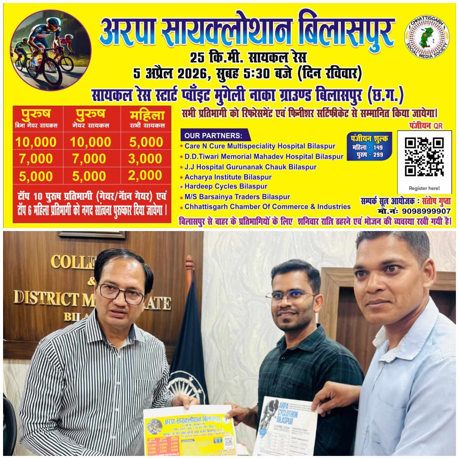 बिलासपुर :— फिटनेस, स्वास्थ्य और पर्यावरण के लिए ईंधन बचत के लिए साइक्लिंग संस्कृति को प्रोत्साहित करने के उद्देश्य से “अरपा सायक्लोथॉन बिलासपुर 2026” का आयोजन आगामी 5 अप्रैल को…