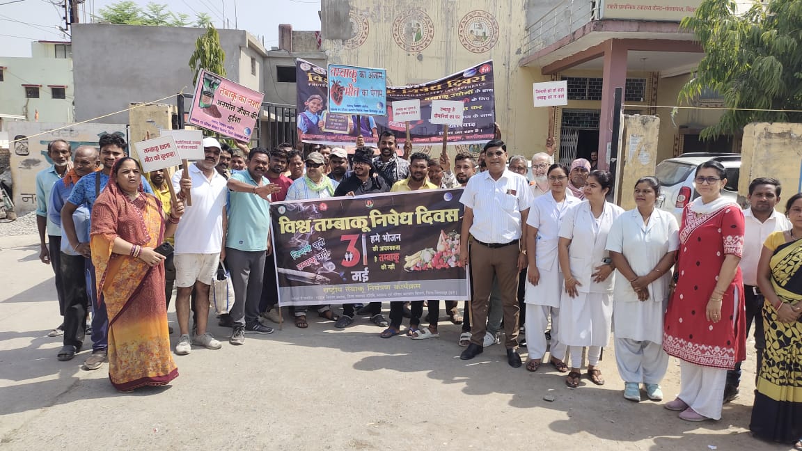 बिलासपुर // विश्व तम्बाकू निषेध दिवस के अवसर पर डीपी विप्र महाविद्यालय के एनसीसी छात्रों ने महाविद्यालय प्रांगण से गांधी चौक तक जन जागरूकता रैली निकाली। रैली में एनसीसी कैडेट एवं शहरी मितानीनों ने बड़े उत्साह के साथ भाग लिया। मुख्य चिकित्सा एवं स्वास्थ्य अधिकारी डॉ. प्रभात कुमार श्रीवास्तव ने रैली को हरी झण्डी दिखाकर रवाना किया। रैली के समापन उपरांत महाविद्यालय परिसर में एनसीसी विंग अधिकारी द्वारा तंबाकू के किसी भी प्रकार का सेवन न करने हेतु शपथ दिलाई गई। कार्यक्रम में जिला नोडल अधिकारी डॉ. बी.के. वैष्णव, जिला कार्यक्रम प्रबंधक सुश्री पियुली मजुमदार, एवं स्वास्थ्य विभाग के अधिकारी-कर्मचारी उपस्थित थे।