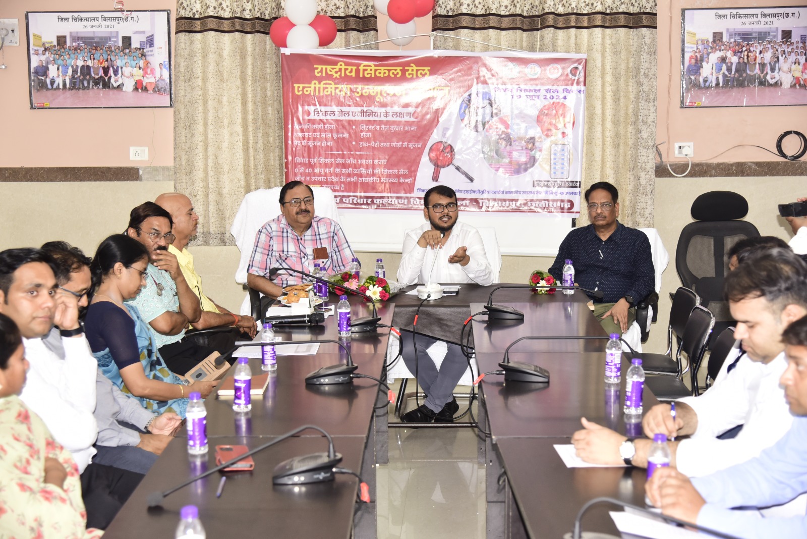 बिलासपुर // विश्व सिकलसेल दिवस के अवसर पर जिला अस्पताल के सभाकक्ष में जिला स्तरीय जागरूकता कार्यक्रम का आयोजन किया गया। यह आयोजन स्वास्थ्य विभाग और आदिवासी विभाग द्वारा संयुक्त रूप से किया गया। कार्यक्रम में नगर निगम कमिश्नर अमित कुमार, सीएमएचओ डाॅ. प्रभात श्रीवास्तव, सिविल सर्जन डाॅ. अनिल गुप्ता, आदिवासी विकास विभाग के सहायक आयुक्त सीएल जायसवाल, डीपीएम प्यूली मजूमदार सहित जिला अस्पताल के डाॅक्टर्स, अधिकारी-कर्मचारी मौजूद थे।