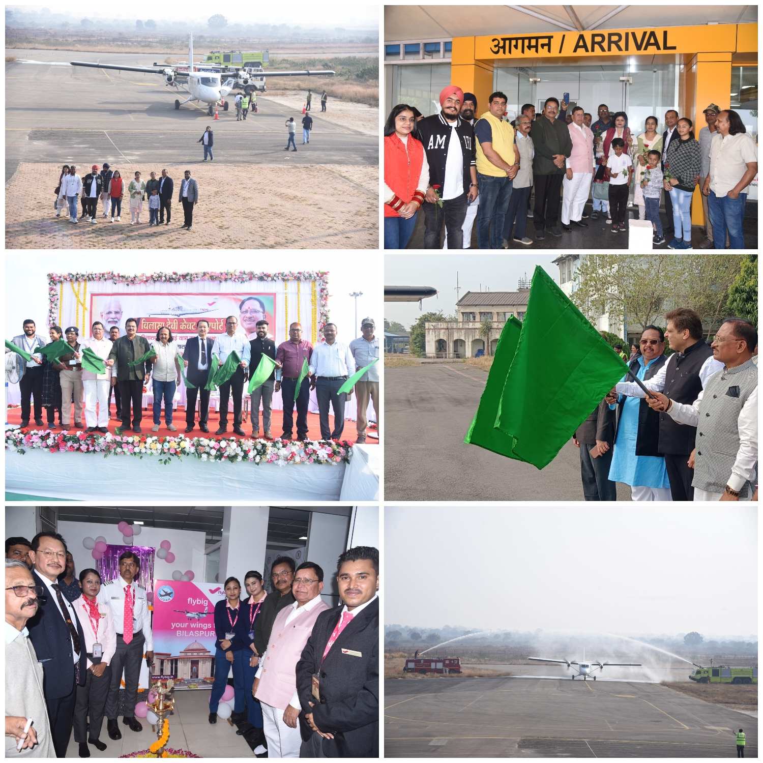 बिलासपुर // मुख्यमंत्री विष्णुदेव साय ने रायपुर-अम्बिकापुर-बिलासपुर हवाई सेवा का स्वामी विवेकानंद विमानतल रायपुर से आज शुभारंभ किया। साय ने इस अवसर पर कहा कि छत्तीसगढ़ के विकास की दिशा में एक और ऐतिहासिक कदम उठाया है। रायपुर -अम्बिकापुर-बिलासपुर विमान सेवा का शुभारंभ हमारे क्षेत्रीय कनेक्टिविटी के विस्तार का प्रतीक है। विमान के बिलासपुर स्थित बिलासा देवी केंवट एयरपोर्ट पहुंचने पर समारोह आयोजित कर यात्रियों का अभिनंदन किया गया।
