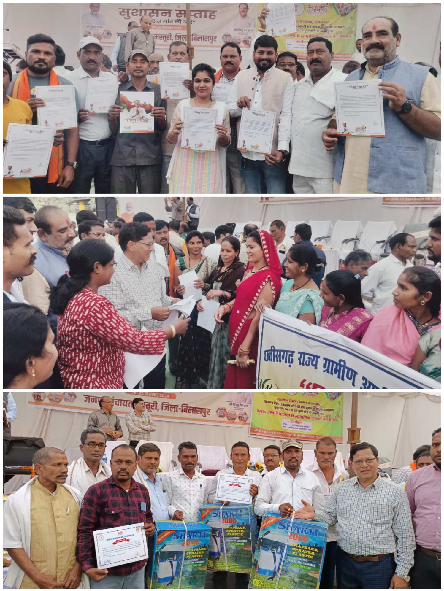 मुख्य अतिथि डॉ कृष्ण मूर्ति बांधी ने अपने उद्बोधन में राज्य एवं केन्द्र सरकार द्वारा संचालित कल्याणकारी योजना महतारी वंदना योजना, प्रधानमंत्री आवास योजना,कृषक उन्नति योजना तेंदूपत्ता संग्राहण, श्री रामलला अयोध्या धाम दर्शन योजना, मुख्यमंत्री कन्या विवाह योजना, महतारी सदन योजना आदि योजना के बारे में विस्तृत जानकारी दी। उन्होंने कृषि विभाग की ओर से पांच किसानों को लपेटा पाइप एवं चार किसानों को नेपसेक स्प्रेयर प्रदान किया। तेरह महिला स्व सहायता समूहों 6- 6 लाख रुपए स्वीकृति होने पर कुल 78 लाख रुपए रूपए भारतीय स्टेट बैंक शाखा प्रबंधक मस्तूरी सुमंत कुमार चौधरी द्वारा स्वीकृति प्रमाण पत्र दिया गया। इस अवसर पर जिला पंचायत सभापति राजेश्वर भार्गव, जनपद पंचायत उपाध्यक्ष रितेश सिंह ठाकुर, जनपद पंचायत सभापति दामोदर कांत, एसडीएम प्रवेश पैकरा । जिसमें मुख्य रूप से एसडीएम प्रवेश पैकरा, तहसीलदार डॉ श्रीमती जयंति देवांगन, नायब तहसीलदार उमाशंकर लहरे, सीईओ जे आर भगत, कार्यक्रम अधिकारी रुचि विश्वकर्मा, एसडीओ अमित बंजारे, कृषि विस्तार अधिकारी ए. के आहिरे, आदि विभाग कर्मचारी उपस्थित थे।