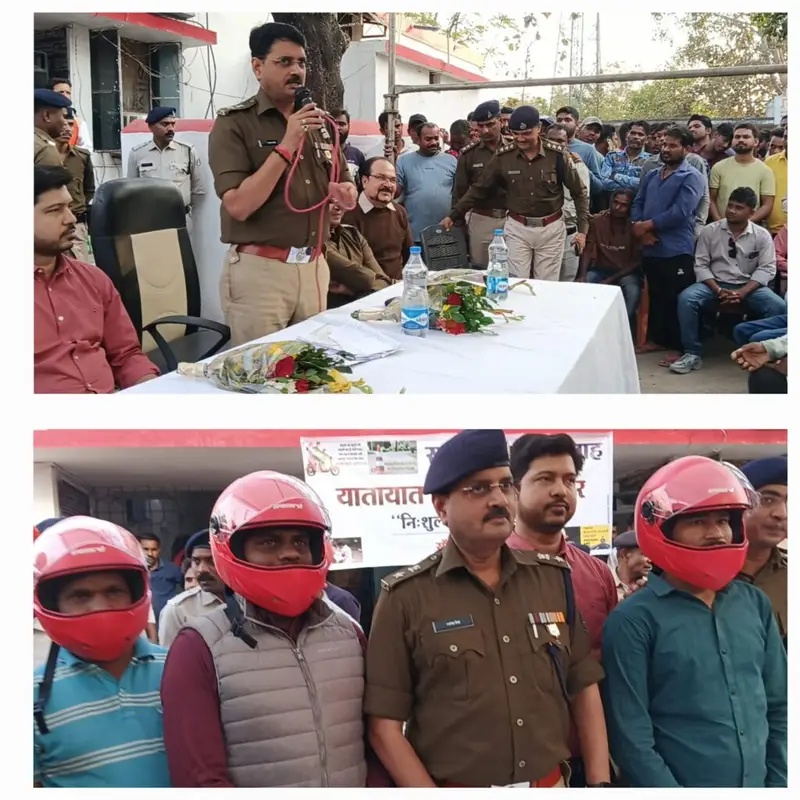 अपने संबोधन में पुलिस कप्तान ने जीवन की सुरक्षा और संरक्षा के लिए यातायात नियमों का गंभीरता से लेने की बात कही। पुलिस कप्तान ने कई उदाहरण पेश कर जीवन में सुरक्षा के योगदान से अवगत कराया। उन्होने जोर देते हुए कहा कि हम सबको यातायत निर्देशों का गंभीरता से पालन करना चाहिए। इस दौरान पुलिस कप्तान ने सबके बीच पहुंचकर हेलमेट का वितरण किया। साथ ही दो पहिया वाहन चलाते समय हेलमेट पहने का निवेदन भी किया। चार पहिया वाहन चालकों को सीट बेल्ट बांधने के साथ गाड़ी नियंत्रण में चलाने की बात कही।