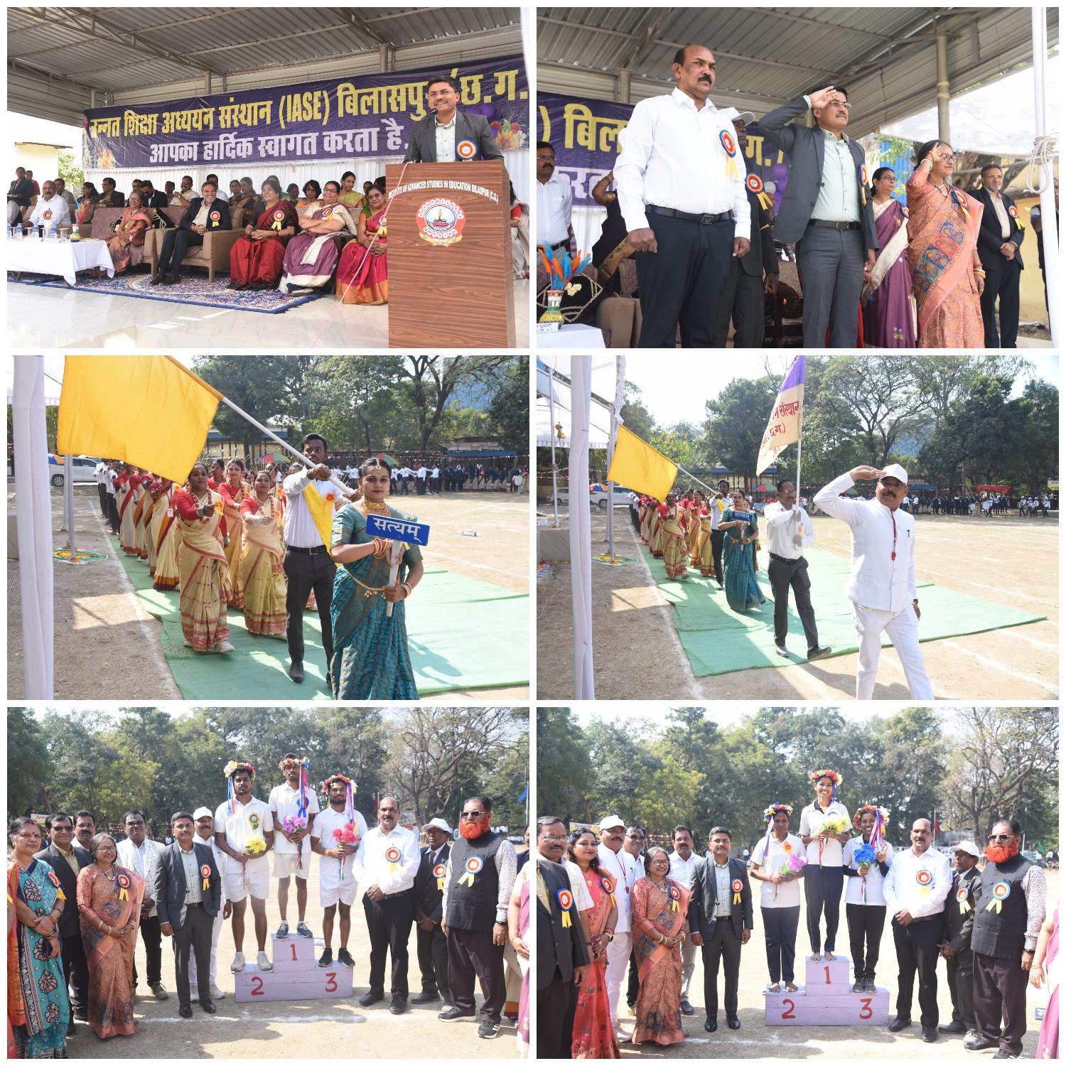 अतिथियों के समक्ष खेलकूद प्रतियोगिताओं में 100 मीटर दौड़ (महिला एवं पुरुष) के फाइनल मुकाबले हुए, जिसमें महिला वर्ग में सबसे तेज दौड़ते हुए मधुरम की भारती ने प्रथम स्थान प्राप्त किया एवं सत्यम की ज्ञानदेवी द्वितीय तथा सुंदरम की नैनसी टोप्पो तृतीय स्थान पर रहीं। वहीं पुरुष वर्ग में प्रथम दिग्विजय सिंह, द्वितीय डमरूधर एवं तृतीय हितेश विश्वकर्मा रहें।विजेताओं को मुख्य अतिथि एवं विशिष्ट अतिथि द्वारा विक्ट्री स्टेंड पर क्राऊन एवं बुके से सम्मानित किया गया। प्रथम सत्र के कार्यक्रम के अंत में प्राचार्य द्वारा मुख्य एवं विशिष्ट अतिथियों को प्रतीक चिन्ह प्रदान किए गए, जिसके बाद सहायक प्राध्यापक डॉ. बी. व्ही. रमणा राव द्वारा आभार प्रदर्शन किया गया।