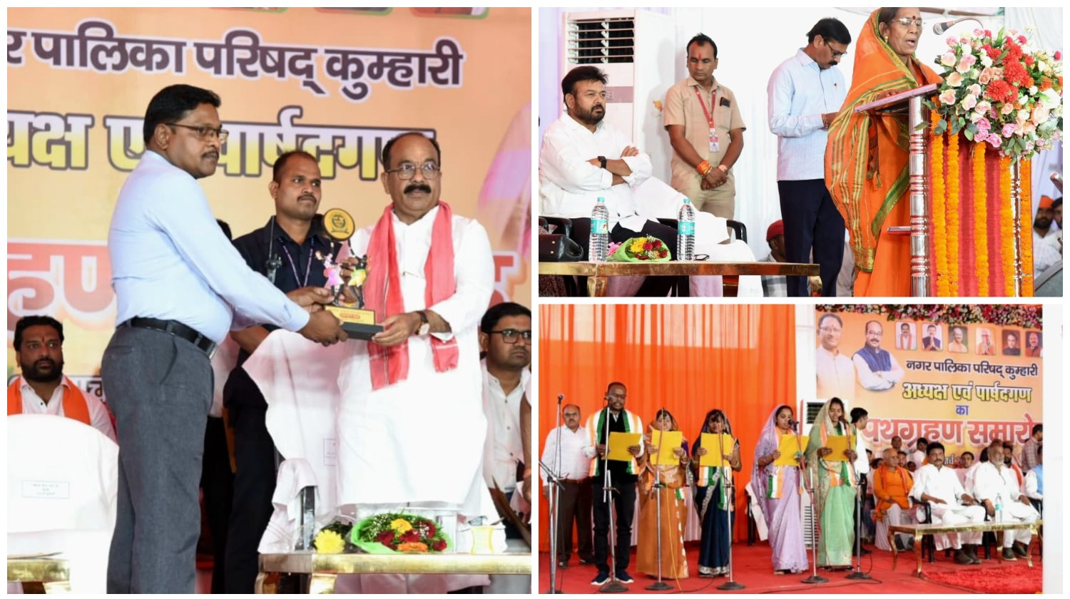 नगर पालिका अध्यक्ष श्रीमती मीना वर्मा के शपथ के बाद 6-6 के समूह में कुल 24 पार्षदों ने शपथ ग्रहण किया। नवनिर्वाचित अध्यक्ष श्रीमती मीना वर्मा ने सभी अतिथियों और नगरवासियों के प्रति आभार व्यक्त किया। नवनिर्वाचित जनप्रतिनिधियों ने शहर के विकास और समृद्धि के लिए मिलकर कार्य करने का संकल्प लिया। पूर्व संसदीय सचिव सियाराम साहू सहित गणमान्य नागरिक और शहरवासी बड़ी संख्या में शपथ ग्रहण समारोह में मौजूद थे।