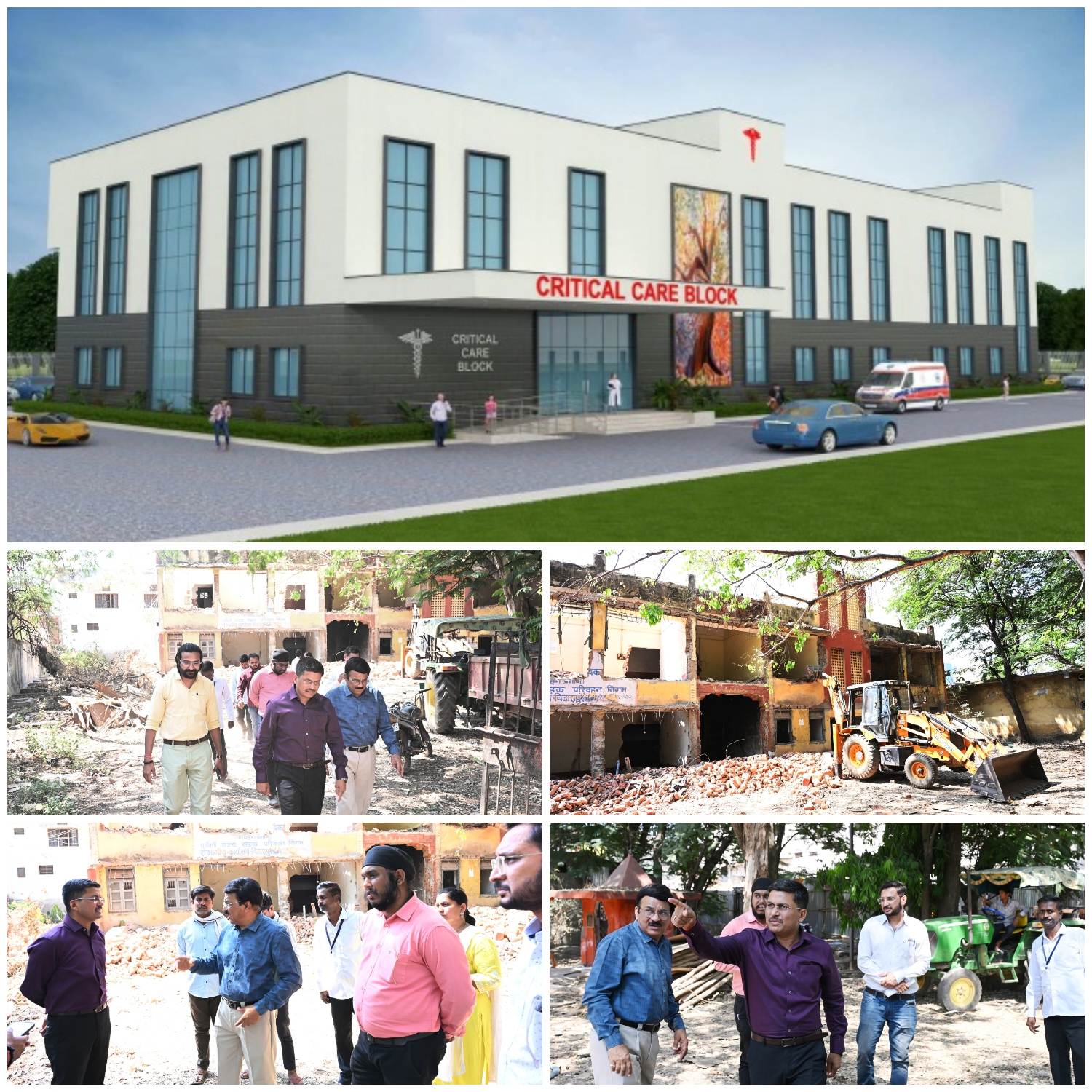 प्रधानमंत्री श्री नरेन्द्र मोदी द्वारा प्रधानमंत्री आयुष्मान भारत स्वास्थ्य अधोसंरचना मिशन का शुभारंभ किया गया। इसमें 5 लाख से अधिक आबादी वाले जिलों में क्रिटिकल केयर हॉस्पिटल ब्लॉक बनाने की योजना शामिल है। इसी योजना के तहत इस 75 बिस्तरों वाले क्रिटिकल केयर हॉस्पिटल का निर्माण किया जा रहा है। इसमें निर्माण कार्य के लिए 24.95 करोड़ रूपए का प्रावधान किया गया है। इसी प्रकार अत्याधुनिक उपकरणों के लिए 11.40 करोड़ रूपए मंजूर किये गये हैं। कुल स्वीकृत राशि का 60 प्रतिशत केन्द्रांश एवं 40 प्रतिशत राज्यांश द्वारा स्वीकृत किया जाएगा। पांच मंजिला इस अस्पताल में चौबीसों घंटे उच्च स्तरीय स्वास्थ्य सुविधा मुहैया कराई जाएगी। यहां आईसीयू के 12 बेड, एचडीयू के 12, आईसोलेशन वार्ड 30, आईसोलेशन रूम 5, डायलिसिस 4, एमसीएच 4, इमरजेंसी 10 इस प्रकार कुल 75 बेड और 2 ट्राएज शामिल होंगे। कलेक्टर श्री अवनीश शरण द्वारा इसके लिए लगातार प्रयास कर जमीन का चिन्हांकन किया गया। जिला अस्पताल के नजदीक राज्य सड़क परिवहन निगम के पुराने संभागीय कार्यालय की जमीन पर इसका निर्माण किया जा रहा है।