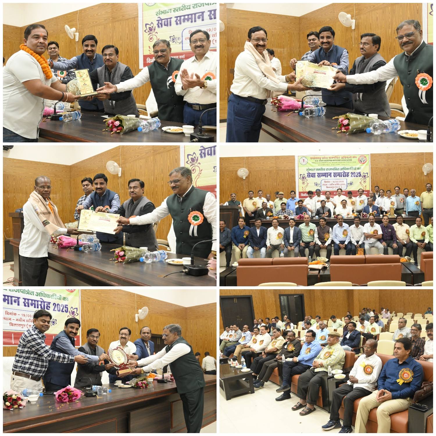 बिलासपुर :— छत्तीसगढ़ प्रदेश राजपत्रित अधिकारी संघ बिलासपुर द्वारा नया सर्किट हाउस में राजपत्रित अधिकारी सेवाकाल सम्मान समारोह का आयोजन किया गया। कार्यक्रम के मुख्य अतिथि संभागीय आयुक्त महादेव कावरे तथा विशिष्ट अतिथि के रूप में प्रांतीय अध्यक्ष छ.ग. प्रदेश राजपत्रित अधिकारी संघ कमल वर्मा, अपर कलेक्टर आर. ए. कुरूवंशी एवं अपर संचालक कोष लेखा एवं पेंशन आर. के. पटेल उपस्थित रहे। मुख्य अतिथियों के द्वारा मां सरस्वती के समक्ष दीप प्रज्जवल कर कार्यक्रम का शुभारंभ किया गया तथा सूर्यांश शिक्षा उत्थान समिति बिलासपुर की छात्राओं द्वारा सरस्वती वंदना एवं राज्यगीत गायन किया गया।