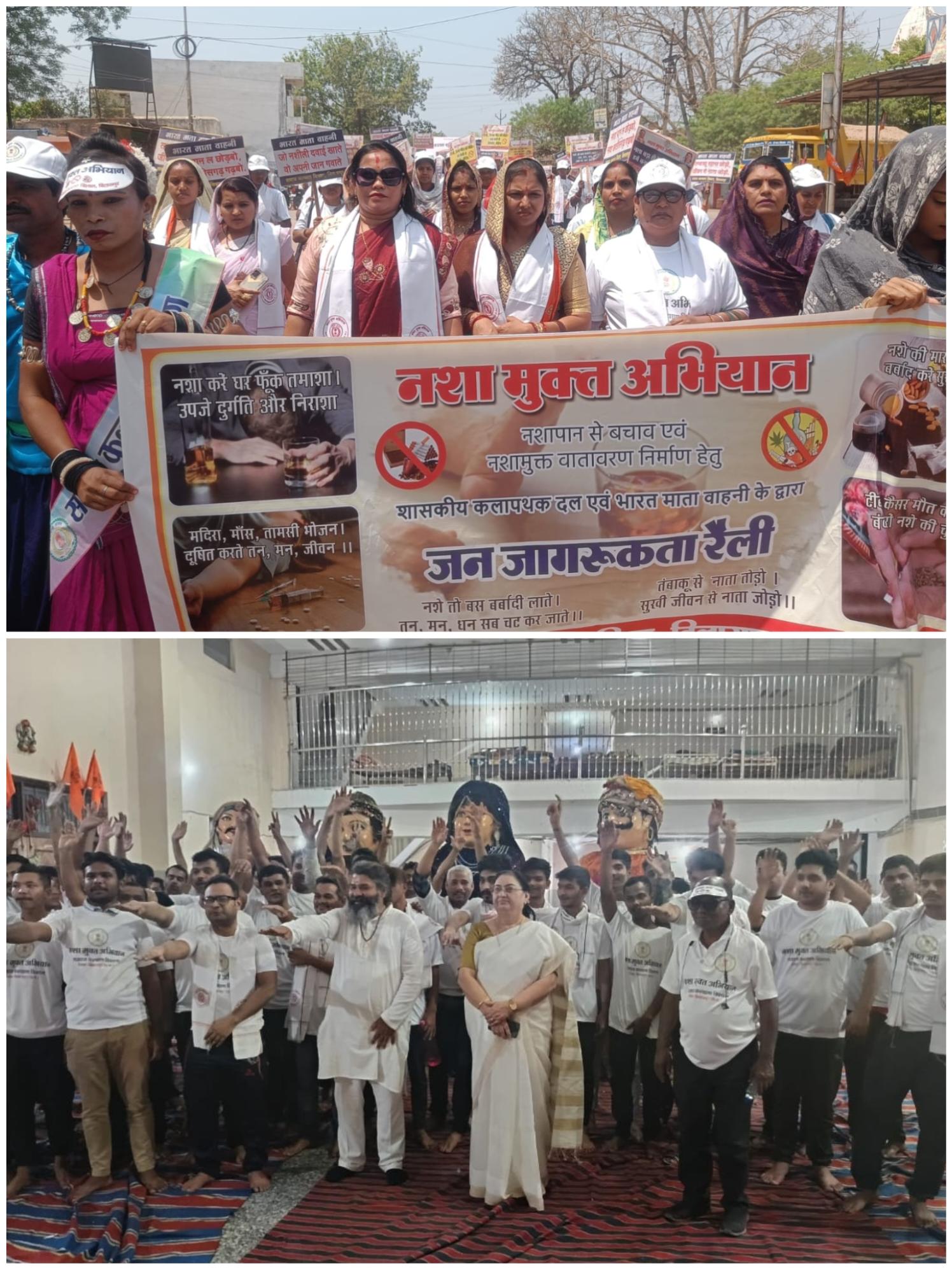 नशामुक्ति अभियान के तहत् विकासखंड कोटा में रथ के माध्यम से, शिवतराई कोटा में राष्ट्रीय सेवा योजना जी.जी. यू द्वारा, नशा मुक्ति केन्द्र लोखंडी, जस्टिस तन्खा मेमोरियल बिलासपुर, ब्रम्हकुमारी प्रजापति, गायत्री परिवार एवं आश्रयदत्त कर्मशाला, बिलासपुर आदि में नुक्कड़ नाट्य, शपथ, जनजागरुकता रैली, संगोष्ठी आदि के माध्यम से कार्यक्रम आयोजित कर लोगों के बीच जागरुकता फैलाय गयी। उक्त कार्यक्रम में प्रमुख रूप से श्रीमती सरस्वती रामेश्री, परिवीक्षा अधिकारी, श्रीमती सरस्वती जायसवाल, श्री प्रशांत मोकाशे, सहायक सांख्यिकी अधिकारी, बीना दीक्षीत, सौरभ दीवान, अजय धुर्वे, वमशी कृष्णा, विजय केशकर, एल.डी भांगे, दादूलाल बरेठ, राजेश सिसोदिया, कौशल कश्यप, राधेश्याम यादव, पुनाराम ध्रुव, अजय सिंह, एवं समाज सेवी संस्था सत्यभामा अवस्थि, शोभना शुक्ला,एस.पी.चतुर्वेदी, जगदीश सिंह राजा आदि उपस्थित थे।