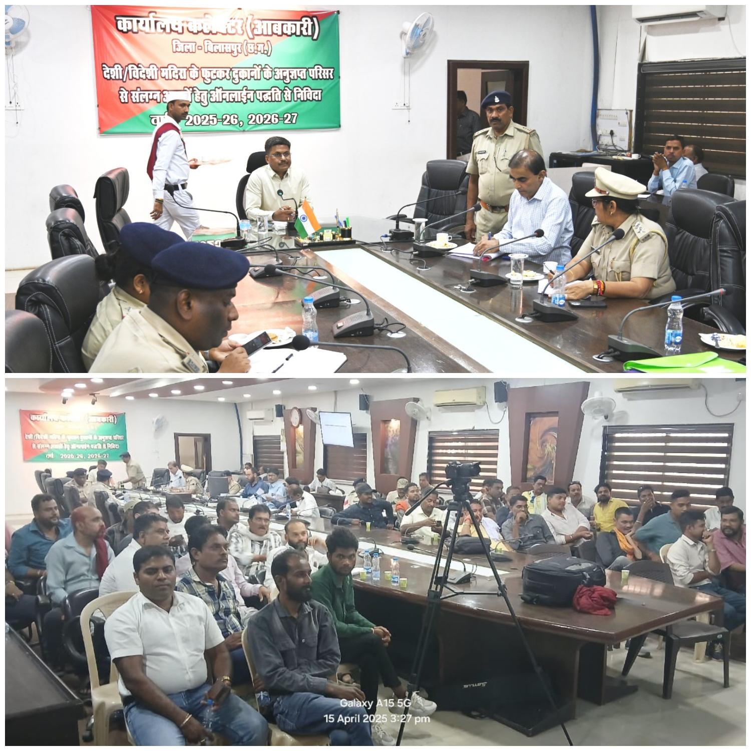 बिलासपुर // कलेक्टर अवनीश शरण की अध्यक्षता में जिला कार्यालय के मंथन सभाकक्ष में मदिरा दुकानों के अहाता आवंटन की कार्यवाही संपन्न हुई। वित्तीय वर्ष 2025-26 एवं 2026-27 के लिये बिलासपुर जिले की 66 देशी,विदेशी एवं कम्पोजिट मदिरा दुकानों में से 36 मदिरा दुकानों के संलग्न अहाता/अहातों के समूह हेतु लाईसेंस धारियों के चयन की प्रक्रिया पूर्ण की गई। अहातों की अनुज्ञप्ति हेतु 36 मदिरा दुकानों में से 27 मंदिरा दुकानों हेतु कुल 82 आवेदन प्राप्त हुए थे। प्राप्त आवेदनों में से उच्चतम बोली लगाने वाले आवेदक का चयन किया गया। चयनित आवेदकों को 02 दिवस के भीतर निर्धारित राशि जमा करनी होगी। शेष 9 मदिरा दुकानों के अहातों हेतु आवेदन पत्र प्राप्त नहीं हुए । उनके व्यवस्थापन हेतु आगामी तिथि आबकारी आयुक्त छत्तीसगढ़ रायपुर द्वारा नियत की जावेगी। चयन प्रक्रिया की कार्यवाही में सहायक जिला आबकारी अधिकारी समीर मिश्रा, कल्पना राठौर, छबि लाल पटेल एवं आबकारी उपनिरीक्षक धर्मेन्द्र शुक्ला, रमेश दुबे, ऐश्वर्या मिंज, नेतराम बंजारे, भूपेन्द्र जामडे एवं अन्य स्टॉफ भी उपस्थित थे।