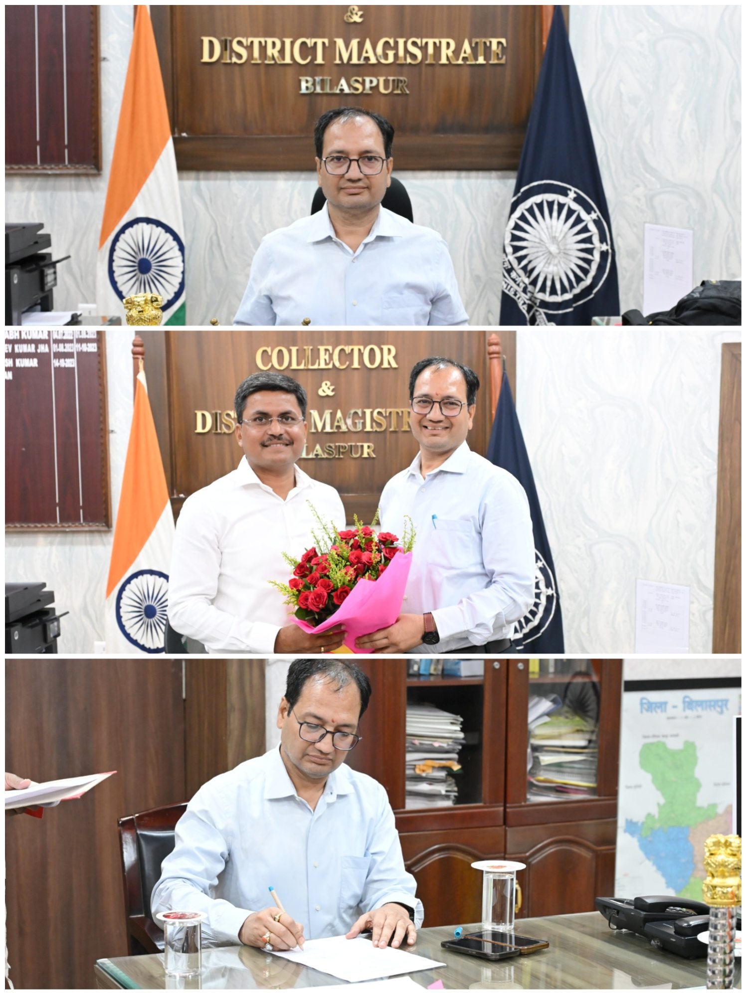 बिलासपुर // जिले के नए कलेक्टर संजय अग्रवाल ने सवेरे कार्यभार ग्रहण कर लिया। निवर्तमान कलेक्टर श्री अवनीश शरण ने उन्हें कार्यभार सौंपी। अग्रवाल वर्ष 2012 बैच के आईएएस अधिकारी हैं। इसके पहले वे राजनांदगांव में कलेक्टर थे। जिला कार्यालय पहुंचने पर नए कलेक्टर का अधिकारी कर्मचारियों ने गुलदस्ता भेंटकर स्वागत किया। औपचारिक स्वागत के बाद कलेक्टर सीधे मंथन सभाकक्ष पहुंचे और टीएल बैठक लेकर सुशासन तिहार सहित महत्वपूर्ण लंबित मामलों की समीक्षा की। उन्होंने जनदर्शन में आम जनता से भेंटकर उनकी समस्याएं भी सुनी।