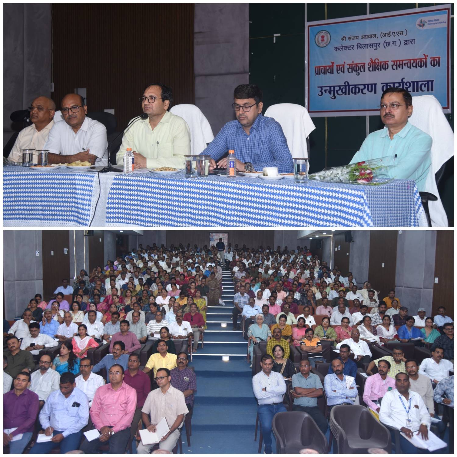 बिलासपुर :— कलेक्टर संजय अग्रवाल की अध्यक्षता में आज जिले के समस्त संकुल शैक्षिक समन्वयकों एवं प्राचार्यों की संयुक्त बैठक स्थानीय देवकीनन्दन दीक्षित सभा भवन, लाल बहादुर शास्त्री स्कूल परिसर में आयोजित की गई। बैठक का मुख्य उद्देश्य विद्यालयों में शिक्षा की गुणवत्ता में सुधार लाना और छात्रों के शैक्षणिक प्रर्दशन को बेहतर बनाना था। कलेक्टर ने सभी प्राचार्याें को निर्देश दिए कि वे विद्यालय मे ंनियमित कक्षाओं का संचालन सुनिश्चित करें। शिक्षकों की उपस्थिति पर विशेष निगरानी रखें और कमजोर छात्रों पर ज्यादा ध्यान देते हुए उनके लिए विशेष कक्षाएं आयोजित करें। उन्होंने कहा कि शिक्षा केवल पाठ्यक्रम तक सीमित नहीं होना चाहिए बल्कि छात्रों में नैतिक मूल्यों और व्यावहारिक ज्ञान का भी विकास होना चाहिए। बैठक में नगर निगम कमिश्नर श्री अमित कुमार, सीईओ जिला पंचायत श्री संदीप अग्रवाल, जिला मिशन समन्वयक श्री ओम पाण्डेय, सहायक परियोजना अधिकारी श्री रामेश्वर जायसवाल सहित जिला शिक्षा कार्यालय के समस्त अधिकारी एवं कर्मचारी उपस्थित रहे।