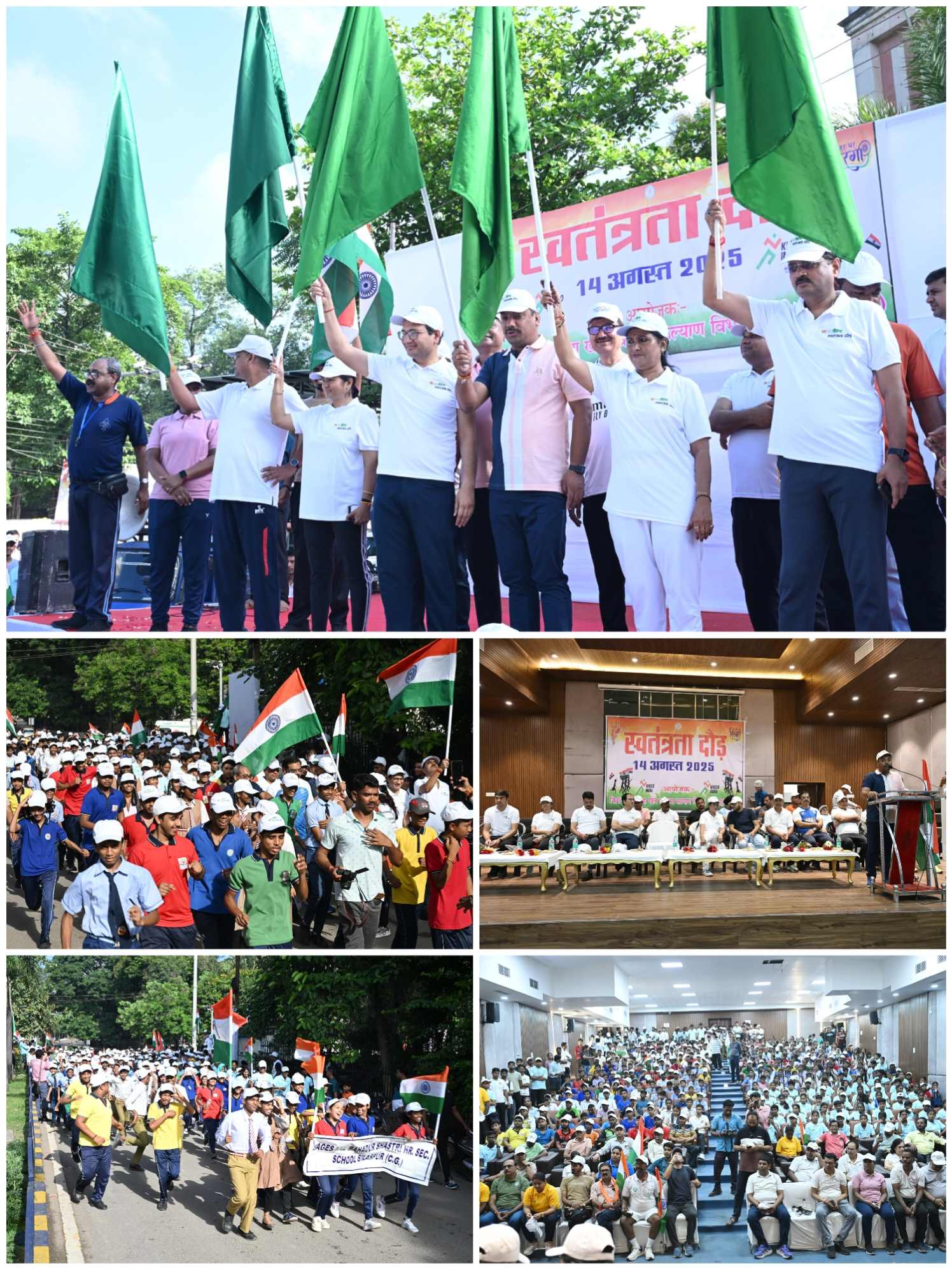 कलेक्टर श्री संजय अग्रवाल, एसएसपी श्री रजनेश सिंह ने भी स्वतंत्रता दौड़ में शामिल होकर लोगों का उत्साह बढ़ाया। यह दौड़ नेहरू चौक से प्रारंभ होकर लाल बहादुर शास्त्री स्कूल में सम्पन्न हुई। वंदे मातरम् और भारत माता के जयकारों से पूर शहर गूंज उठा। दौड़ में जनप्रतिनिधि,अधिकारी, खिलाड़ी, स्कूली बच्चों ने शामिल होकर देशभक्ति का संदेश दिया।
