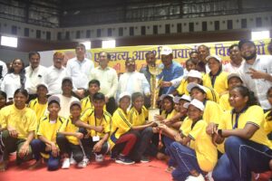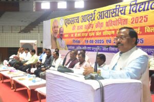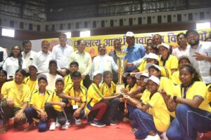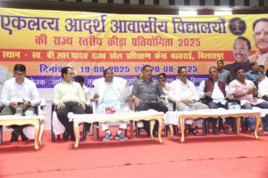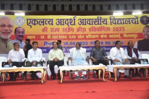बिलासपुर // एकलव्य आदर्श आवासीय विद्यालयों की राज्य स्तरीय क्रीडा प्रतियोगिता के समापन अवसर पर मुख्य अतिथि के तौर पर आदिम जाति कल्याण मंत्री श्री राम विचार नेताम शामिल हुए। बहतराई स्टेडियम में आयोजित कार्यक्रम की अध्यक्षता बेलतरा विधायक सुशांत शुक्ला ने की। इस अवसर पर जिला पंचायत अध्यक्ष श्री राजेश सूर्यवंशी, कलेक्टर संजय अग्रवाल, सीईओ जिला पंचायत संदीप अग्रवाल, मोहित जायसवाल, आदिम जाति विकास विभाग के अपर संचालक श्री जितेंद्र गुप्ता, तारकेश्वर देवांगन मौजूद थे। प्रतियोगिता में 796 अंक प्राप्त करके सरगुजा क्षेत्र ने ओवरऑल चैंपियन का खिताब हासिल किया वहीं दूसरे स्थान पर बस्तर क्षेत्र रहा। मंत्री श्री नेताम द्वारा विजेता छात्र-छात्राओं को पुरस्कार वितरण किया गया।