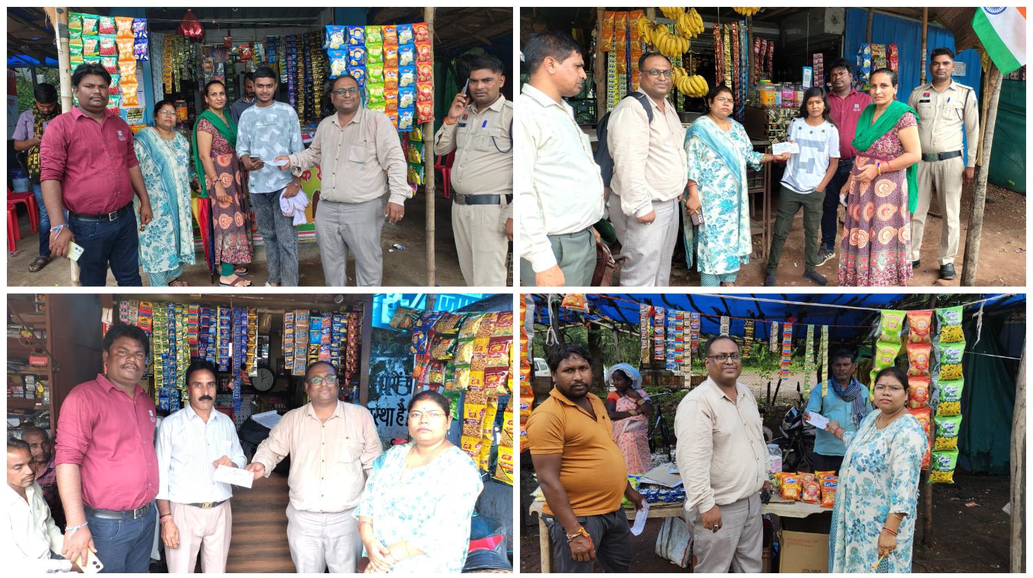 लबिलासपुर :— बिलासपुर के मार्गदर्शन में आज दिनांक 20/08/25 को जिला बिलासपुर में औषधि विभाग, नगर निगम जोन क्रमांक 01 एवं सकरी पुलिस थाना की संयुक्त कार्यवाही में खाद्य एवं औषधि प्रशासन औषधि निरीक्षक श्री सुनील पंडा, श्रीमती कामेशवरी पटेल, श्रीमती सुमन लता कंवर संयुक्त दल द्वारा आत्मानंद स्कूल परिसर सकरी, कानन पेंडारी, एवं कोटा बायपास क्षेत्र के आस पास स्थित कुल 15 प्रतिष्ठानों में कोटपा एक्ट 2003 के धारा 4 एवं 6 के उल्लंघन अनुरूप कुल 2100 रुपए की चालानी कार्यवाही की गई ।