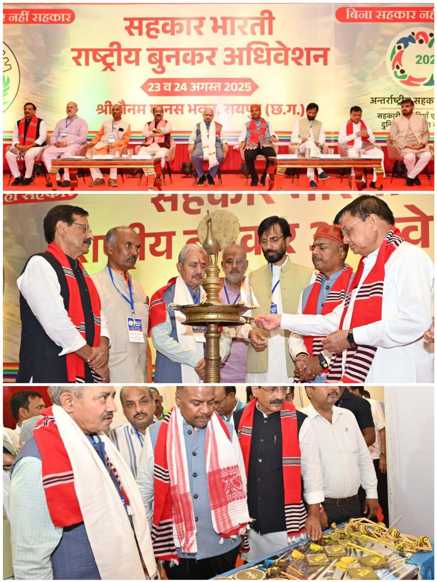 बिलासपुर :— उप मुख्यमंत्री अरुण साव, सहकारिता मंत्री केदार कश्यप और श्रम मंत्री लखन लाल देवांगन राष्ट्रीय बुनकर अधिवेशन के उद्घाटन सत्र में शामिल हुए। सहकार भारती द्वारा राजधानी रायपुर के जैनम मानस भवन में 23 अगस्त और 24 अगस्त को देश में पहली बार राष्ट्रीय बुनकर अधिवेशन का आयोजन किया गया है। इसमें 28 राज्यों से विभिन्न बुनकर संघों के एक हजार से अधिक प्रतिनिधि भाग ले रहे हैं।