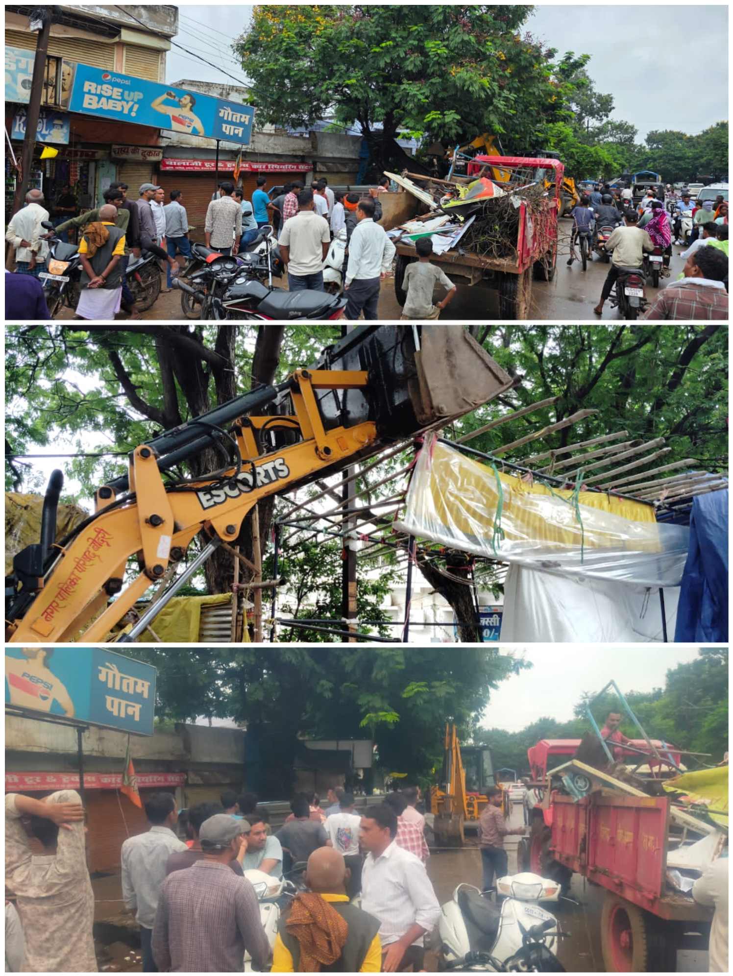 बिलासपुर :— माननीय उच्च न्यायालय बिलासपुर के आदेशानुसार और कलेक्टर के निर्देशानुसार एसडीएम बिल्हा के मार्गदर्शन में आज नया पारा चौक बोदरी से चकरभाठा ब्रिज तक एवं रहंगी मोड़ बोदरी से उच्च न्यायालय आवासीय परिसर तक जाने वाले सड़क पर एवं सड़क किनारे दोनों तरफ फलों, सब्जी एवं अन्य सामग्री आदि के ठेले, गुमटी, चकरभाठा स्थित दुकानों के दुकानदारों द्वारा सड़क पर पोस्टर एवं शेड तैयार कर अतिक्रमण किए जाने वाले सामानों को बाहर रखकर व्यापार किए जाने वाले अतिक्रमण को हटाया गया। एवं पोस्टर,शेड को नगरपालिका बोदरी के दस्ते द्वारा जप्ती की कारवाई की गई । रोड किनारे अव्यवस्थित ढंग से खड़े करने वाले वाहन जिससे यातायात बाधित होता है, को निर्देशानुसार यातायात वाहन के लिफ्टर द्वारा लिफ्ट कर थाना प्रभारी चकरभाठा द्वारा थाने में खड़ा कराया गया। उक्त कार्यवाही सुबह 8 बजे से शाम साढ़े 4 बजे तक की गई। कार्यवाही में तहसीलदार बोदरी श्री संदीप साय, नायब तहसीलदार बोदरी ओमप्रकाश चंद्रवंशी, थाना प्रभारी चकरभाठा उत्तम साहू, मुख्य नगर पालिका अधिकारी भारती साहू, राजस्व विभाग के टीम पटवारी ,कोटवार एवं पुलिस के कर्मचारी गण, नगरपालिका के कर्मचारी गण बड़ी संख्या में उपस्थित रहे। यातायात बिलासपुर से लिफ्टर मंगवाकर सड़क किनारे अव्यवस्थित ढंग से खड़े वाहनों को लिफ्ट कर थाना भिजवाया गया।