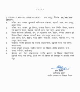 बिलासपुर :— राज्य शासन ने सार्वजनिक खुले मैदानों, सार्वजनिक मार्गों, फुटपाथों, चौराहों, सार्वजनिक खुले स्थानों आदि पर पंडाल या अस्थाई संरचनाओं के निर्माण की अनुमति के लिए विस्तृत दिशा-निर्देश जारी किए हैं। नगरीय प्रशासन एवं विकास विभाग ने इस संबंध में मंत्रालय से सभी नगर निगमों के आयुक्तों तथा नगर पालिकाओं एवं नगर पंचायतों के मुख्य कार्यपालन अधिकारियों को परिपत्र जारी किया है।