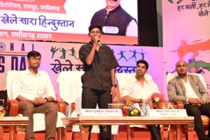 बिलासपुर :— हॉकी के जादूगर मेजर ध्यानचंद की जयंती राष्ट्रीय खेल दिवस पर राज्य शासन के खेलकूद एवं युवा कल्याण विभाग द्वारा प्रदेश के खिलाड़ियों के लिए आज खेल से जुड़े विभिन्न पहलुओं पर कई सत्रों का आयोजन किया गया। रायपुर के पंडित दीनदयाल उपाध्याय ऑडिटोरियम में आयोजित विभिन्न इंटर-एक्टिव सत्रों में विशेषज्ञों एवं अंतरराष्ट्रीय खिलाड़ियों ने राज्य की प्रतिभाओं को डाइट, फिटनेस, मेंटल हेल्थ, इन्जरी रिकवरी, पोषण और करियर से जुड़े मंत्र दिए। उन्होंने खिलाड़ियों के सवालों के जवाब भी दिए।