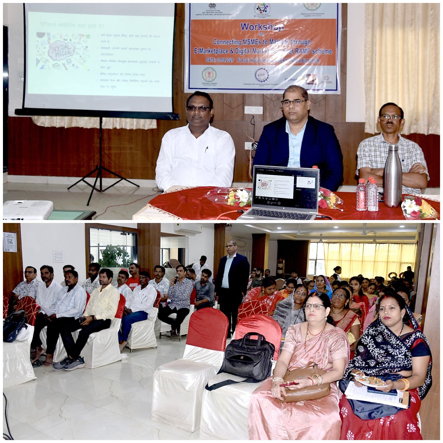 बिलासपुर // सूक्ष्म, लघु एवं मध्यम उद्यमो (एमएसएमई), महिला उद्यमियों, स्व सहायता समूहों (एसएचजी) और पारंपरिक कारीगरों को डिजिटल माध्यम से बाजार से जोड़ने के उद्देश्य से उद्योग संचालनालय और सीएसआईडीसी, रायपुर की पहल से मंगला चौक स्थित एक निजी होटल में एमएसएमई को ई-मार्केटप्लेस एव डिजिटल मार्केटिंग से जोड़ने संबंधी कार्यशाला आयोजित की गई। यह कार्यक्रम भारत सरकार की आरएएमपी योजना के अंतर्गत हुआ।