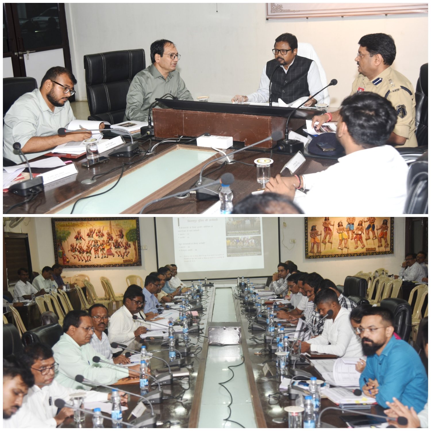एसएसपी रजनेश सिंह ने जिले में आगामी दिनों में आने वाले त्योहार, कानून व्यवस्था एवं नशे के विरूद्ध किये गये सख्त कार्रवाई के संबंध में बताया। अतिरिक्त मुख्य सचिव ने ई-साक्ष्य के जरिए पुलिस, डॉक्टर एवं अन्य लोगों की न्यायालयों में पेशी के लिए की जारी तैयारियों की भी जानकारी ली। बैठक में उन्होंने निर्माण कार्य से जुड़े विभागों की भी समीक्षा की। उन्होंने कहा कि बरसात की सीजन अब संपन्न होने जा रहा है। सड़क मरम्मत और पक्का पेच वर्क के लिए अभी से सभी तैयारियां कर ली जाये ताकि तत्काल काम शुरू की जा सके। श्री पिंगुआ ने जिले में अधूरी पड़ी सिंचाई योजनाओं को पूर्ण करने के राज्य सरकार के निर्देशों की जानकारी देते हुए इनका जल्द से जल्द प्रस्ताव भेजने को कहा है। कलेक्टर संजय अग्रवाल ने बैठक की कार्यवाही का संचालन किया। उन्होंने जिले में शासकीय योजनाओं की प्रमुख उपलब्धियों से अवगत कराया। उन्होंने कहा कि प्रभारी सचिव महोदय द्वारा इस बैठक में दिए गये दिशा-निर्देशों का पालन कर योजनाओं को तेजी से लागू करते हुए लोगों को लाभान्वित किया जायेगा।