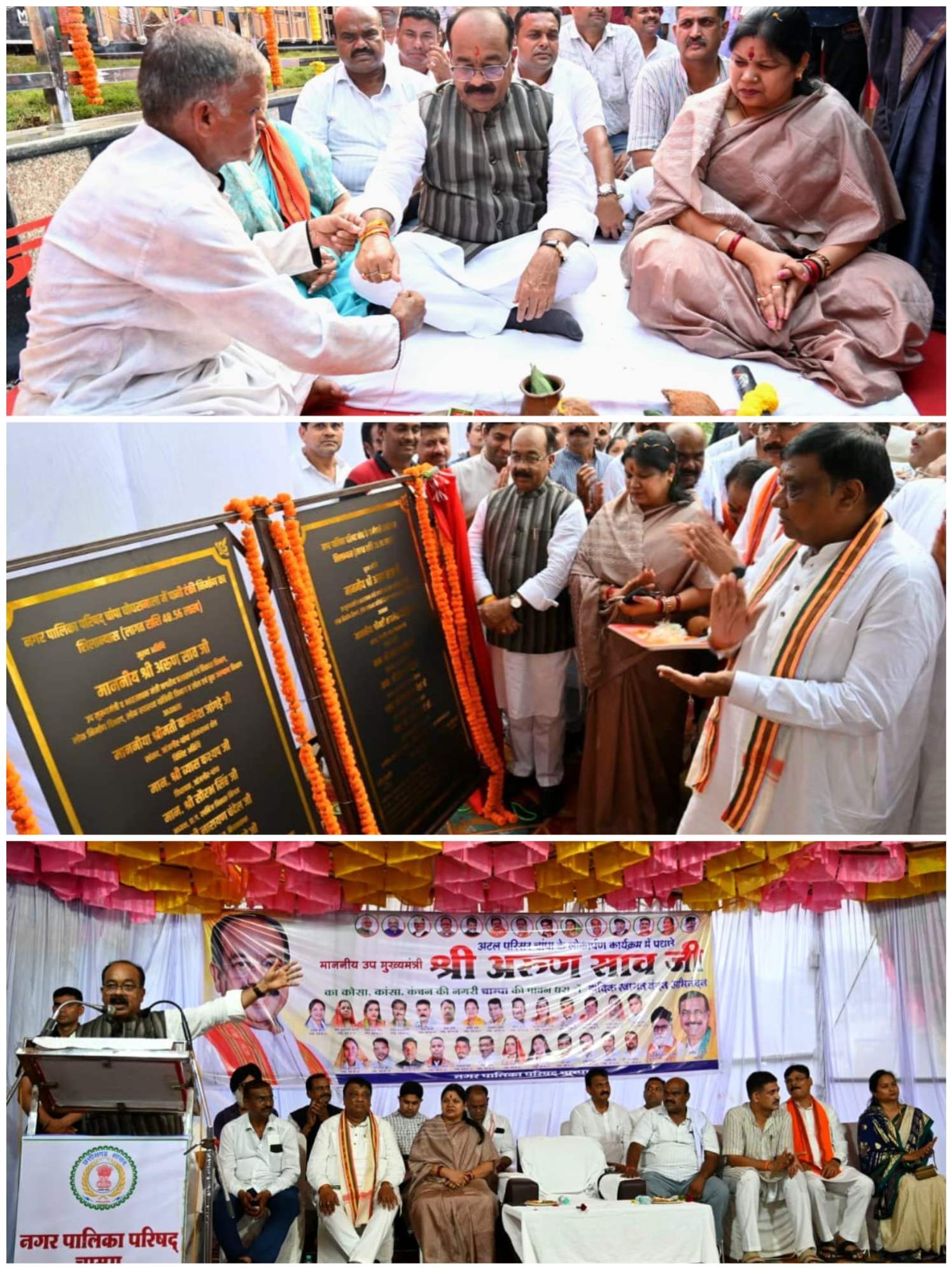 श्री साव ने चांपा नगर पालिका में कुल एक करोड़ 8 लाख 54 हजार रुपए से अधिक के विकास कार्यों का लोकार्पण एवं भूमिपूजन किया। उन्होंने इस दौरान चांपा नगर पालिका के घोघरानाला में 48 लाख 56 हजार रुपए की लागत से पानी टंकी निर्माण, 29 लाख 98 हजार रुपए की लागत से नगर पालिका के कर्मचारियों के लिए आवास का शिलान्यास एवं 30 लाख रुपए की लागत से नवनिर्मित अटल परिसर का लोकार्पण किया। सांसद श्रीमती कमलेश जांगड़े, विधायक श्री ब्यास कश्यप और छत्तीसगढ खनिज विकास निगम के अध्यक्ष श्री सौरभ सिंह भी कार्यक्रम में शामिल हुए।