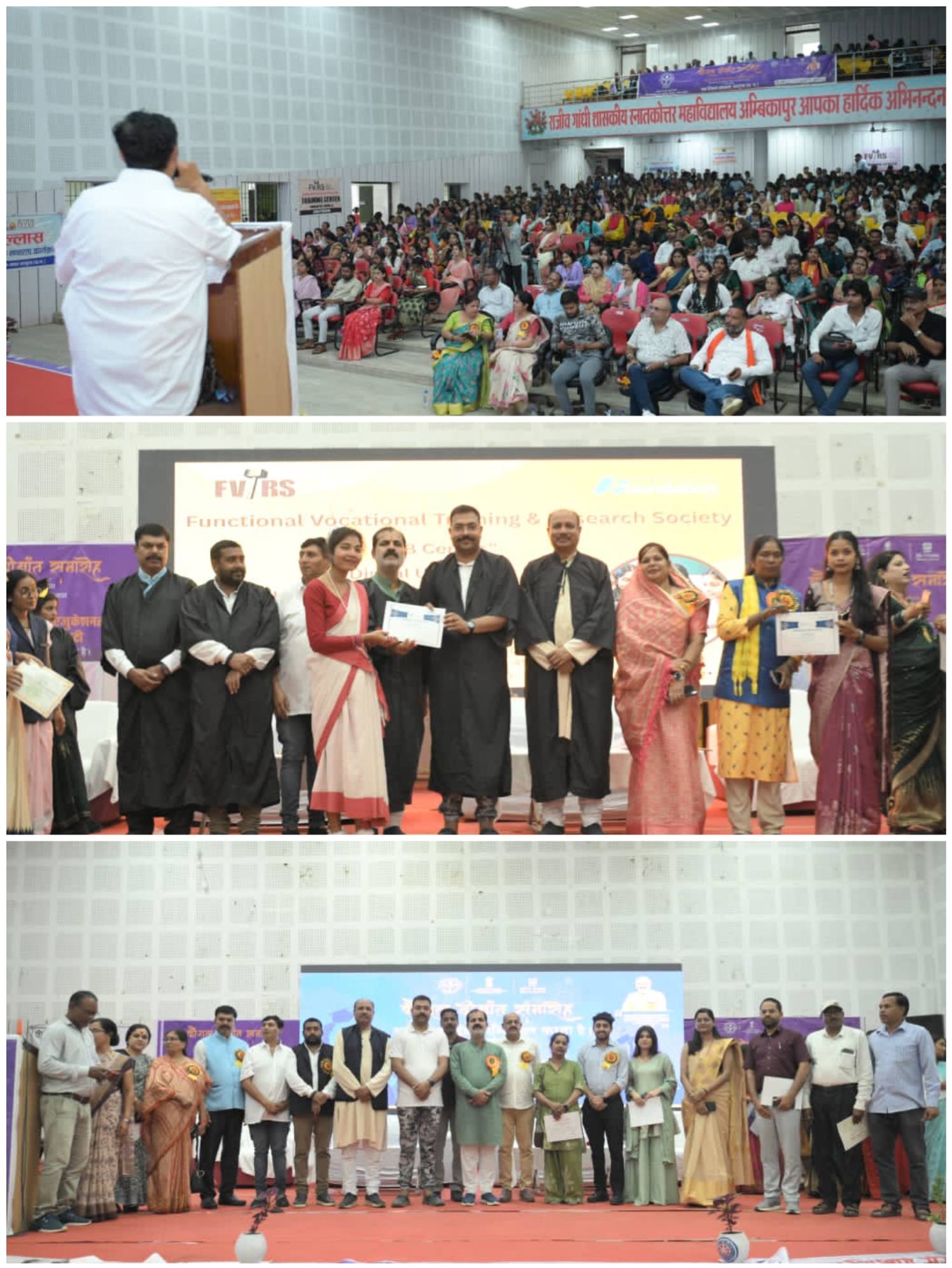 अंबिकापुर :— अंबिकापुर के पी जी कॉलेज ऑडिटोरियम मे कौशल दीक्षान्त समारोह का आयोजन किया गया। एफ वी टी आर एस अंबिकापुर एवं जन शिक्षण संस्थान के संयुक्त तत्वावधान में आयोजित कार्यक्रम में मुख्य अतिथि के रूप में श्री विश्व विजय सिंह तोमर, माननीय अध्यक्ष राज्य युवा आयोग छत्तीसगढ़ की उपस्थिति रहीं। साथ ही श्री हरमिंदर सिंह टिन्नी, माननीय सभापति नगर पालिक निगम अंबिकापुर छत्तीसगढ़ की गरिमामय उपस्थिति रहीं। श्री फेलिक्स डिसूज़ा एफ वी टी आर एस बंगलुरु , श्री जीतेन्द्र सोनी, पार्षद नगर निगम अंबिकापुर, श्री आलोक दुबे, वरिष्ठ पार्षद, श्री दीपेंद्र यादव सेंट्रल बैंक ऑफ इंडिया अंबिकापुर, अनीता रवींद्र गुप्ता जी एमआईएस मेंबर, श्रीमती श्वेता गुप्ता एम आई एस मेंबर, श्री ललित पटेल असिस्टैंट डायरेक्टर जिला कौशल विभाग सरगुजा डायरेक्टर एवं जन शिक्षण संस्थान सरगुजा से निदेशक एम सिद्दीकी,