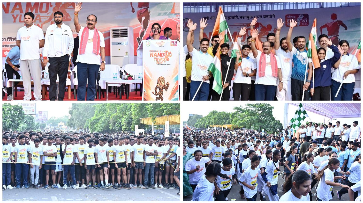 उप मुख्यमंत्री श्री अरुण साव ने ‘नमो युवा रन’ का शुभारंभ करते हुए कहा कि देश का हर युवा स्वस्थ हो, समर्थ हो, सक्षम हो और नशे से दूर रहे, इसकी जागरूकता के लिए इस दौड़ का आयोजन किया गया है। प्रधानमंत्री श्री नरेन्द्र मोदी ने देश के युवाओं और खेलों की तरक्की के लिए महत्वपूर्ण काम किए हैं। विभिन्न योजनाओं और कार्यक्रमों के माध्यम से भारत सरकार युवा शक्ति को तैयार करने का काम कर रही है।