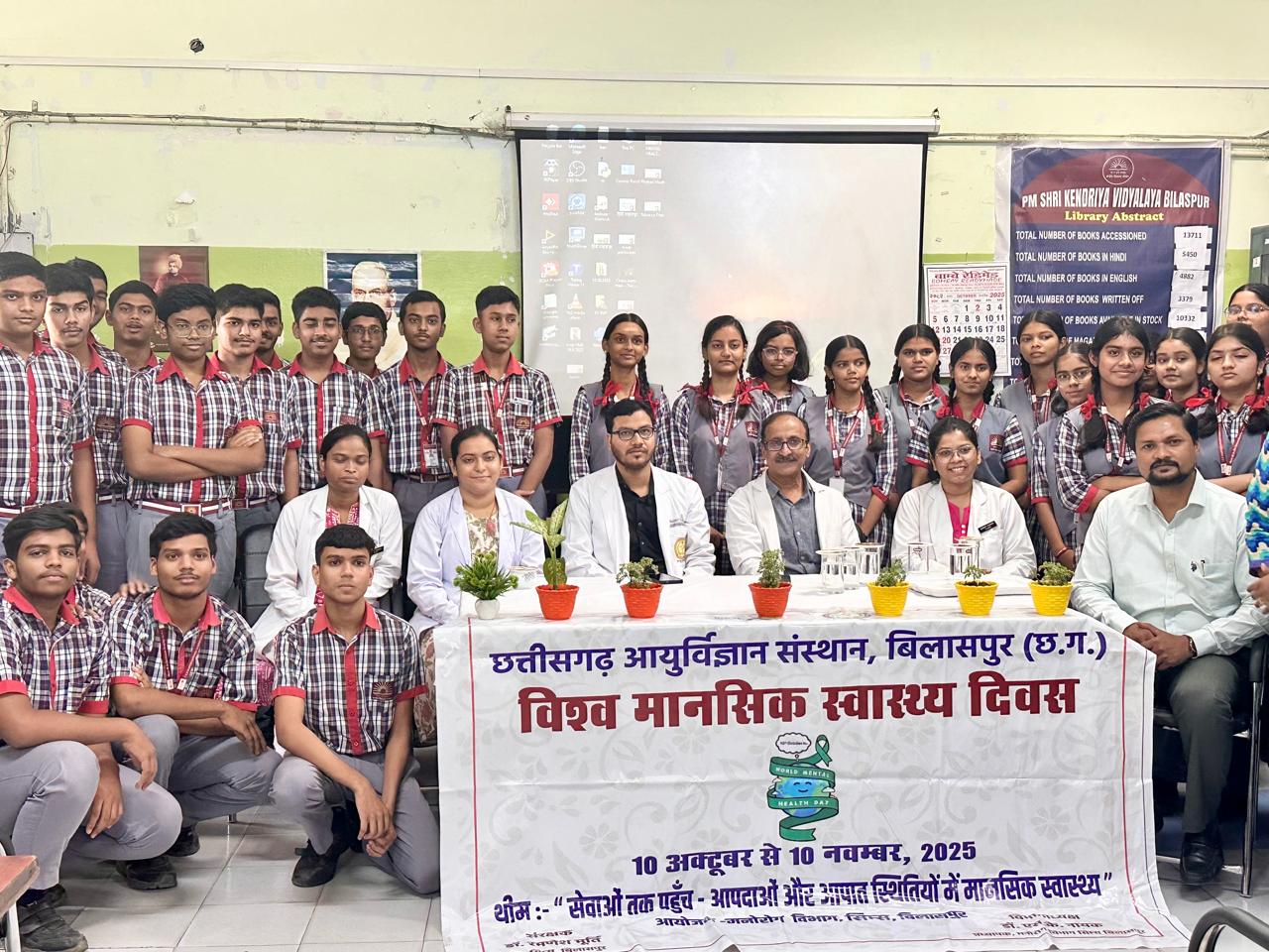 बिलासपुर :— दिनांक 17 ऑक्टूबर 2025 को विश्व मानसिक स्वास्थ्य दिवस के जागरूकता पखवाड़े एवम छत्तीसगढ़ रजत जयंती समारोह के अवसर में विश्व स्वास्थय संगठन एवं राष्ट्रीय मानसिक स्वास्थय कार्यक्रम, स्वास्थय एवं परिवार कल्याण मंत्रालय भारत सरकार के दिशानिर्देश अनुशार आज पी एम श्री केन्द्रीय विद्यालय बिलासपुर में मनोरोग विभाग सिम्स द्वारा विश्व मानसिक स्वास्थ्य दिवस को मानसिक स्वास्थय जागरूकता दिवस के रूप में मनाया गया। प्रतिवर्ष के अनुशार इस वर्ष WHO द्वारा विषय – सेवाओं तक पहुँच – “आपदाओं और आपात स्थितियों में मानसिक स्वास्थय ” निर्धारित किया गया है । इस वर्ष 10 ऑक्टूबर से 10 नवम्बर तक मानसिक स्वास्थय जागरूकता पखवाड़ा घोषित किया गया है जिसके अंतर्गत विभिन्न जागरूकता कार्यक्रम का आयोजन किया जाना प्रस्तावित है। इसी कड़ी में आज केन्द्रीय विद्यालय बिलासपुर के कार्यक्रम के मुख्य वक्ता डॉ सुजित नायक विभागाध्यक्ष मनोरोग विभाग सिम्स बिलासपुर, डॉ राकेश कुमार जाँगड़े मनोरोग विशेषज्ञ डॉ सत्य स्मिता जेना मनोरोग चिकित्सक डॉ सुधांशु भट्ट मनरोग विभाग थे ।