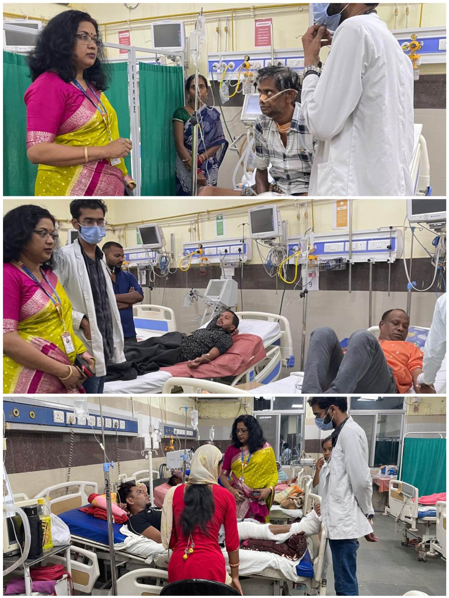 बिलासपुर // प्रभारी अधिष्ठाता डॉ अर्चना सिंह के द्वारा रात 8 बजे कैजुअल्टी एवं ट्रायजे वार्ड का आकस्मिक निरीक्षण किया गया। मरीजों की चिकित्सकीय व्यवस्था,डाइट के बारे में उचित निर्देश दिया गया एवं छठ पूजा का प्रारंभ भी हुआ है,जिससे आज छठ घाट और शहर में काफी भीड़ है,किसी भी प्रकार की अनहोनी को देखते हुए हॉस्पिटल में चाक चौबंद व्यस्था की गई है एवं समस्त चिकित्सक गण भी अपनी ड्यूटी सजग रूप से पूर्ण तैयारी के साथ उपस्थित हैं। अधिष्ठाता के द्वारा छठ घाट में भी सिम्स की ओर से डॉक्टर की टीम, आवश्यक दवाइयों एवं एम्बुलेंस के साथ व्यवस्था की गई,उसका निरीक्षण भी किया गया ।