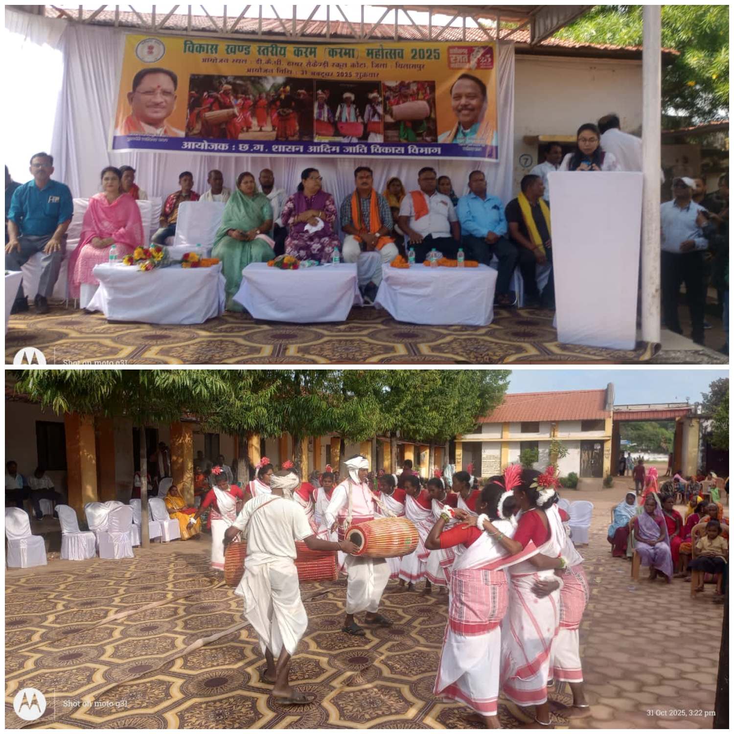 बिलासपुर // आदिम जाति तथा अनुसूचित जाति विकास विभाग द्वारा जिल में 1 अक्टूबर से 15 नवंबर 2025 तक करमा महोत्सव मनाया जा रहा है। महोत्सव के अंतर्गत विकासखण्ड कोटा में विकासखण्ड स्तरीय करमा प्रतियोगिता आयोजन किया गया। प्रतियोगिता में 6 नर्तक दलों ने भाग लिया एवं उनके द्वारा मनमोहक करमा नृत्य एवं करमा गीतों की प्रस्तुति दी गई। जनजातीय लोक गायकों (गीतों) का प्रतिनिधित्व एवं जनजातीय समुदायों में प्रचलित परम्परागत वाद्य यंत्रों का प्रदर्शन किया गया।