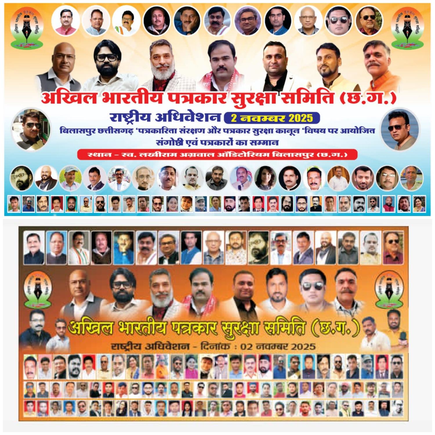 बिलासपुर :- पत्रकारिता संरक्षण एवं पत्रकार सुरक्षा कानून विधेयक पर संसोधन पर संगोष्ठी के साथ छत्तीसगढ़ के आलावा अन्य राज्यों से आये पत्रकारों का सम्मान अखिल भारतीय पत्रकार सुरक्षा समिति छत्तीसगढ़ न्यायधानी बिलासपुर में 2 नवंबर की स्व लखीराम अग्रवाल ऑडिटोरियम में करने जा रहा हैं।
