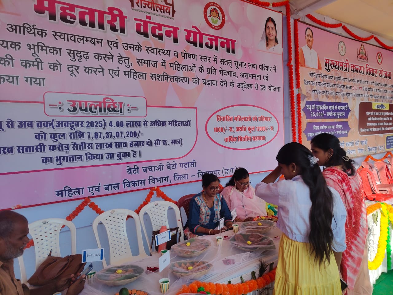 इसके साथ ही विभागीय योजनाओं जैसे महतारी वंदन योजना,मातृ वंदन योजना, मुख्यमंत्री कन्या विवाह योजना सहित अन्य योजनाओं की विस्तृत जानकारी भी दी जा रही है, ताकि अधिक से अधिक पात्र लोग इन योजनाओं का लाभ उठा सकें।
