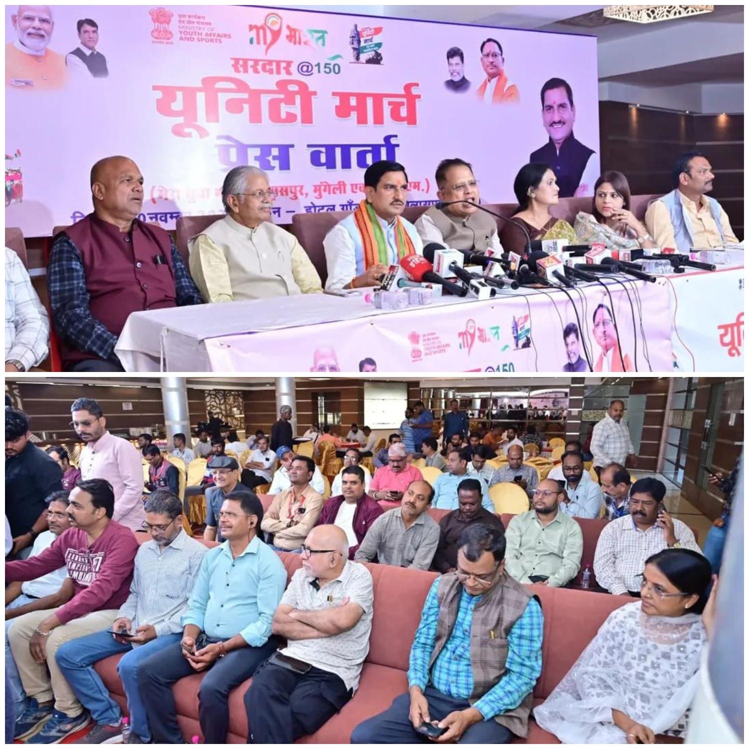 बिलासपुर :— यूनिटी मार्च, लौह पुरूष सरदार वल्लभ भाई पटेल कि 150 वी जयंती के उपलक्ष्य पर आयोजित एक राष्ट्रव्यापी जन अभियान हैं। सरदार पटेल का दृढ़ नेतृत्व कूटनीतिक कौशल और राष्ट्रीय एकता के प्रति अटूट प्रतिबद्धता आज भी पीढियों की प्रेरित करती है और यूनिटी मार्च यात्रा उनकी अमर विरासत को समर्पित है। यह यात्रा सरदार पटेल के एकीकृत भारत के दृष्टिकोण को प्रधानमंत्री श्री नरेन्द्र मोदी के विकसित और आत्मर्निभर भारत के मिशन से जोड़ते हुए जनभागीदारी से एक सका राष्ट्रीय अभियान बनाएगी।