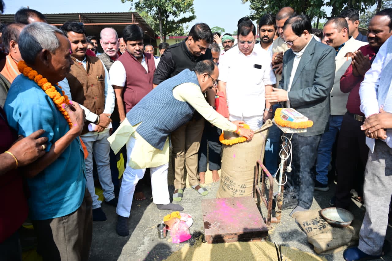 बिलासपुर // जिले में से समर्थन मूल्य धान खरीदी की शुरुआत हो गई। बिलासपुर जिले में सेंदरी से इसकी शुरुआत हुई। उप मुख्यमंत्री अरुण साव ने इसका शुभारंभ किया। ग्राम कछार के छोटे किसान रामकुमार साहू और अनंतराम साहू का धान खरीद कर इसका विधिवत शुभारंभ हुआ। श्री साव ने खरीदी केंद्र पर दोनों किसान का तिलक लगाकर स्वागत किया। उनके धान की तौलाई कर बोहनी किया गया। विधायक श्री सुशांत शुक्ला, जिला पंचायत अध्यक्ष राजेश सूर्यवंशी, कलेक्टर संजय अग्रवाल सहित जनप्रतिनिधि और किसान बड़ी संख्या में उपस्थित थे।