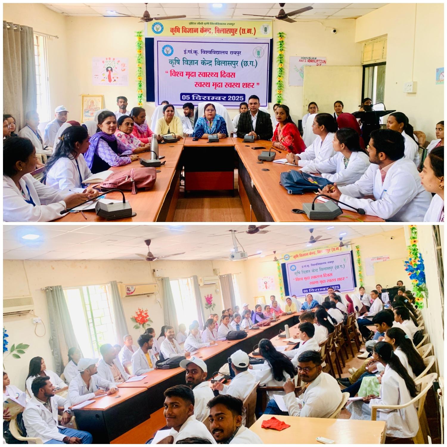 बिलासपुर // विश्व मृदा स्वास्थ्य दिवस के अवसर पर आज कृषि विज्ञान केंद्र बिलासपुर में ‘‘स्वस्थ मृदा स्वस्थ शहर’’ थीम पर आधारित जागरूकता एवं प्रशिक्षण कार्यक्रम आयोजित किया गया। कृषि विज्ञान केन्द्र प्रभारी वरिष्ठ वैज्ञानिक एवं प्रमुख, डॉ. शिल्पा कौशिक ने कार्यक्रम में मृदा स्वास्थ्य के महत्व पर प्रकाश डाला। रासायनिक खादों से मृदा पर होने वाले दुष्प्रभाव की जानकारी दी। साथ ही प्राकृतिक खेती के महत्व के बारे में बताया। इस अवसर पर कृषि विज्ञान केन्द्र के वैज्ञानिक डॉ. अमित शुक्ला द्वारा मिट्टी की महत्ता के बारे में व उसके स्वास्थ्य को किस प्रकार सुधारा जाए इस संबंध में विस्तृत जानकारी दी। श्री जयंत साहू ने मिट्टी की जांच कराने की सलाह दी तथा जांच के उपरांत मृदा स्वास्थ्य कार्ड के अनुसार उर्वरकों के प्रयोग की सलाह दी।