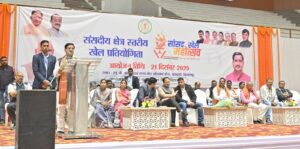 मुख्य अतिथि श्री तोखन साहू ने समापन समारोह को सम्बोधित करते हुए कहा कि प्रधानमंत्री जी ने वर्ष 2047 तक विकसित भारत बनाने का संकल्प लिया है। यह तभी संभव होगा जब हर आदमी स्वस्थ एवं फिट रहे। इसके लिए हर आदमी को अपनी रूचि के अनुरूप कोई न कोई खेल में हिस्सा लेना चाहिए। उन्होंने कहा कि सांसद खेल महोत्सव में स्थानीय स्तर पर प्रचलित खेलों को शामिल किया गया ताकि अधिकाधिक लोग इसमें भाग लेकर अपनी प्रतिभा को निखार सकें। कबड्डी,खो-खो, रस्साकसी, नीबू दौड़, बोरा दौड़ जैसे एक दर्जन खेल प्रतियोगिताओं को शामिल किया गया। इन खेलों को हमें भूलना नहीं है। हम अपने जीवन में मोबाईल का उपयोग कम करने इन खेलों की ओर ध्यान लगाना है ताकि शारीरिक रूप से हम मजबूत रह सकें। उन्होंने कहा कि खेल हमारे जीवन का अभिन्न हिस्सा हैं। यहां तक कि भगवान श्रीकृष्ण भी खेल कला में माहिर थे। खेल से हमारो तन एवं मन स्वस्थ रहने के साथ जीवन में अनुशासन की पाठ भी सिखाता है। इससे आपसी सहयोग, संयम एवं योजना बनाने के गुण इससे विकसित होते हैं। केन्द्रीय मंत्री ने कहा कि गीता के कर्मयोग का परीक्षण शाला हैं हमारे खेल मैदान। इसमें हार और जीत मायने नहीं रखता है। कोई हारता है तभी तो कोई जीत पाता है। हारने वालों को निराश होने की जरूरत नहीं हैं, बल्कि इससे मिले सबक का इस्तेमाल कर आगे जीत सकते हैं। उन्होंने प्रतियोगिता में हिस्सा लेने वाले सभी खिलाड़ियों को बधाई दी। उन्होंने कहा भविष्य में सांसद खेल महोत्सव का दायरा और बढ़ाकर व्यापक रूप में आयोजित किया जायेगा। श्री साहू ने बताया कि आगामी 25 दिसम्बर को माननीय प्रधानमंत्री जी सांसद खेल महोत्सव में भाग लेने वाले खिलाड़ियों को वचुअल सम्बोधित करेंगे। प्रधानमंत्री जी का सम्बोधन सुनने खिलाड़ियों का आह्वान किया।
