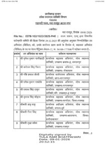 बिलासपुर :— राज्य शासन ने जल जीवन मिशन के कार्यों में तेजी लाने, लोक स्वास्थ्य यांत्रिकी विभाग के काम-काज में कसावट तथा विभागीय कार्य प्रणाली में सुधार लाने प्रशासनिक स्तर पर बड़े बदलाव किए हैं। उप मुख्यमंत्री तथा लोक स्वास्थ्य यांत्रिकी मंत्री श्री अरुण साव के निर्देश पर विभाग ने वरिष्ठ स्तर पर राज्य कार्यालय, जल जीवन मिशन मुख्यालय और मैदानी कार्यालयों के 34 अधिकारियों का स्थानांतरण व जिम्मेदारी बदल दी गई है। विभाग ने मैदानी स्तर पर कार्यों को और गति देने 26 उप अभियंताओं को सहायक अभियंता के रूप में पदोन्नत किया है।