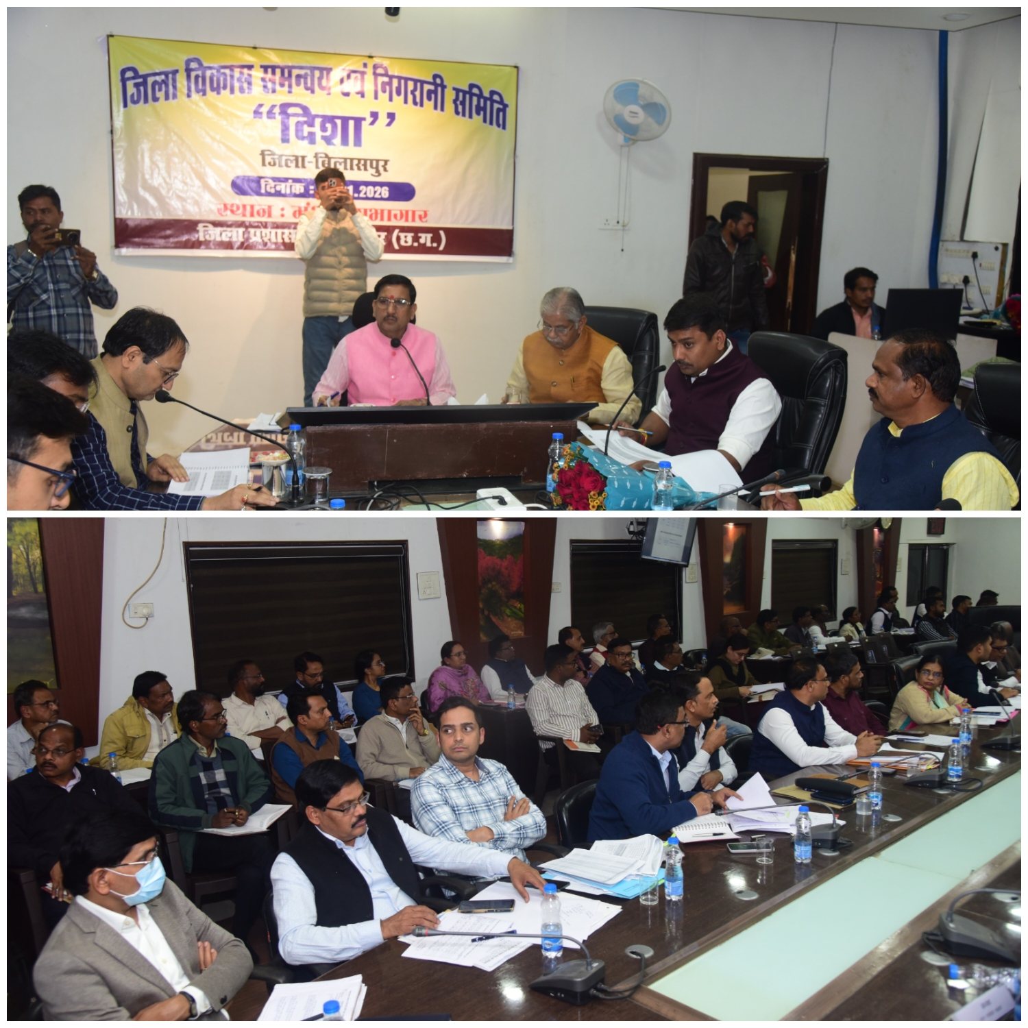 बिलासपुर // जिला विकास समन्वय एवं निगरानी समिति (दिशा) की बैठक यहां जिला कार्यालय के मंथन सभाकक्ष में केन्द्रीय आवासन एवं शहरी विकास राज्य मंत्री और सांसद तोखन साहू की अध्यक्षता में संपन्न हुई। बैठक में फ्लैगशिप योजनाओं सहित जिले में संचालित विकास योजनाओं की प्रगति की गहन समीक्षा की गई। धरती आबा जनजातीय ग्राम उत्कर्ष अभियान के तहत 122 गांवों की विकास परियोजनाओं एवं अरपा भैंसाझार परियोजना सहित विभिन्न विभागीय योजनाओं की समीक्षा की गई। बैठक में विधायक सर्व धरम लाल कौशिक, सुशांत शुक्ला, दिलीप लहरिया, जिला पंचायत अध्यक्ष राजेश सूर्यवंशी, महापौर पूजा विधानी सहित जनपद एवं नगर पंचायत के अध्यक्ष एवं अन्य जनप्रतिनिधि, कलेक्टर संजय अग्रवाल, नगर निगम कमिश्नर प्रकाश कुमार सर्वे, सीईओ जिला पंचायत संदीप अग्रवाल सहित विभागीय अधिकारी मौजूद थे।