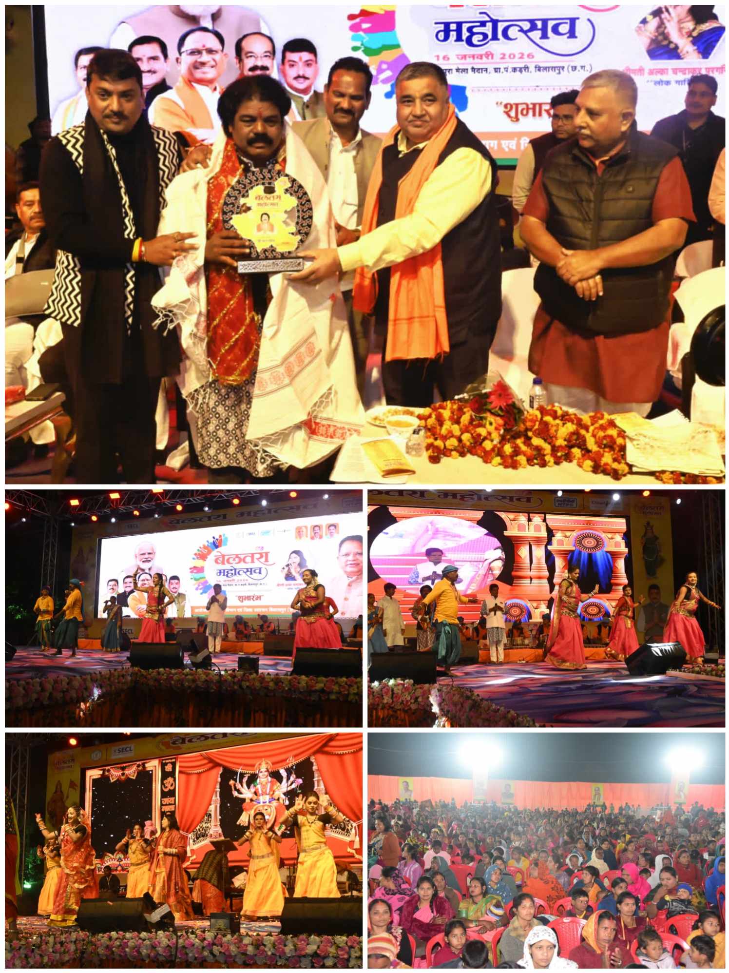 ग्राम कड़री के नगपुरा के ऐतिहासिक मेला मैदान में आयोजित बेलतरा महोत्सव का भव्य शुभारंभ संस्कृत मंत्री राजेश अग्रवाल के मुख्य आतिथ्य में सम्पन्न हुआ। अग्रवाल ने कहा कि छत्तीसगढ़ की कला और संस्कृति को सहेजने के लिए हमारी सरकार प्रतिबद्ध ह। उन्होंने कहा कि मुख्यमंत्री विष्णु देव साय के नेतृत्व में छत्तीसगढ़ प्रगति पथ पर तेजी से आगे बढ़ रहा है और विकास के नए आयाम गढ़ रहा है। माताएं, बहने, युवा, किसान और कर्मचारी सभी छत्तीसगढ़ सरकार की नीतियों और योजनाओं से खुशहाल हैं। उन्होंने कहा कि छत्तीसगढ़ के पुरातन मंदिरों को संरक्षित रखने का प्रयास किया जा रहा है और क्षेत्र के ऐतिहासिक मंदिरों का जीर्णोधार किया जाएगा, उन्होंने बेलतरा क्षेत्र में मंदिर के समीप धर्मशाला निर्माण की घोषणा की जिसका उपयोग स्थानीय निवासी सामुदायिक भवन के रूप में भी कर सकेंगे।