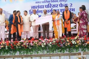 बिलासपुर :— उप मुख्यमंत्री तथा नगरीय प्रशासन एवं विकास मंत्री अरुण साव ने बसंत पंचमी के दिन रायपुर में नए नालंदा परिसर का भूमिपूजन किया। एनआईटी के सामने जीई रोड के किनारे 21 करोड़ 7 लाख रुपए की लागत से इस 1017 सीटर नालंदा परिसर फेज-2 का निर्माण किया जा रहा है। इससे शहर में उच्च शिक्षा हासिल कर रहे तथा विभिन्न प्रतियोगी परीक्षाओं की तैयारी कर रहे युवाओं को तैयारी का अच्छा माहौल मिलेगा। उन्हें ऑनलाइन तथा ऑफलाइन लाइब्रेरी के साथ ही अच्छी गुणवत्ता की अध्ययन सामग्री भी मिल सकेगी। वन एवं पर्यावरण मंत्री केदार कश्यप, विधायकगण राजेश मूणत, सुनील सोनी, मोतीलाल साहू, अनुज शर्मा तथा रायपुर की महापौर मीनल चौबे भी भूमिपूजन कार्यक्रम में शामिल हुईं।