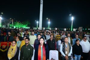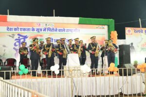 बिलासपुर :— राष्ट्रीय गीत वंदे मातरम के 150 वीं वर्षगांठ के अवसर पर आयोजित कार्यक्रम में मुख्यमंत्री विष्णु देव साय ने शिरकत की। इस अवसर पर रिवर व्यू में रेलवे सुरक्षा बल के बैंड ग्रुप की प्रस्तुति ने सबका मन मोह लिया। टी आर यादव की अगुवाई में बैंड ग्रुप ने देश भक्ति गीतों की धुन पर इंस्ट्रूमेंट के ज़रिए अपनी शानदार प्रस्तुति दी। कार्यक्रम की शुरूआत वंदे मातरम् गीत से की गई,उसके बाद सारे जहां से अच्छा..ऐ मेरे वतन के लोगों जैसे गीतों ने समां बांधा। देशभक्ति गीतों से सराबोर इस सांस्कृतिक संध्या में स्थानीय नागरिकों ने उत्साह से भागीदारी की।