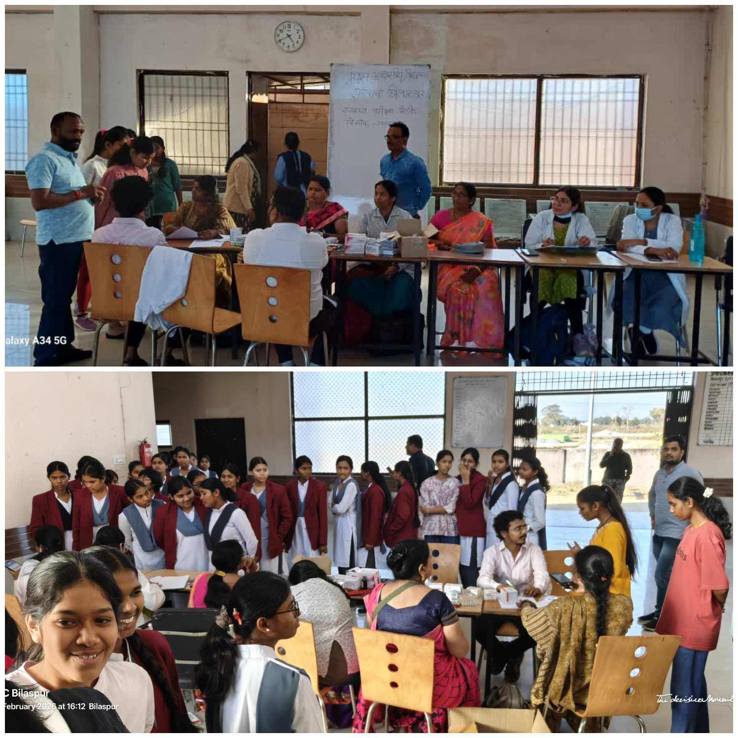 बिलासपुर :— आदिम जाति कल्याण विभाग अंतर्गत संचालित प्रयास आवासीय विद्यालय रामतला में विद्यार्थियों के स्वास्थ्य को ध्यान में रखते हुए आज व्यापक स्वास्थ्य परीक्षण शिविर का आयोजन किया गया। स्वास्थ्य परीक्षण में प्रयास आवासीय विद्यालय के लगभग 250 बालक एवं 180 बालिकाएँ, कुल 430 विद्यार्थी शामिल हुए। वहीं अन्य पिछड़ा वर्ग प्रयास कन्या आवासीय विद्यालय की 340 छात्राओं का भी स्वास्थ्य परीक्षण किया गया। इस प्रकार कुल 770 विद्यार्थियों का स्वास्थ्य परीक्षण किया गया।